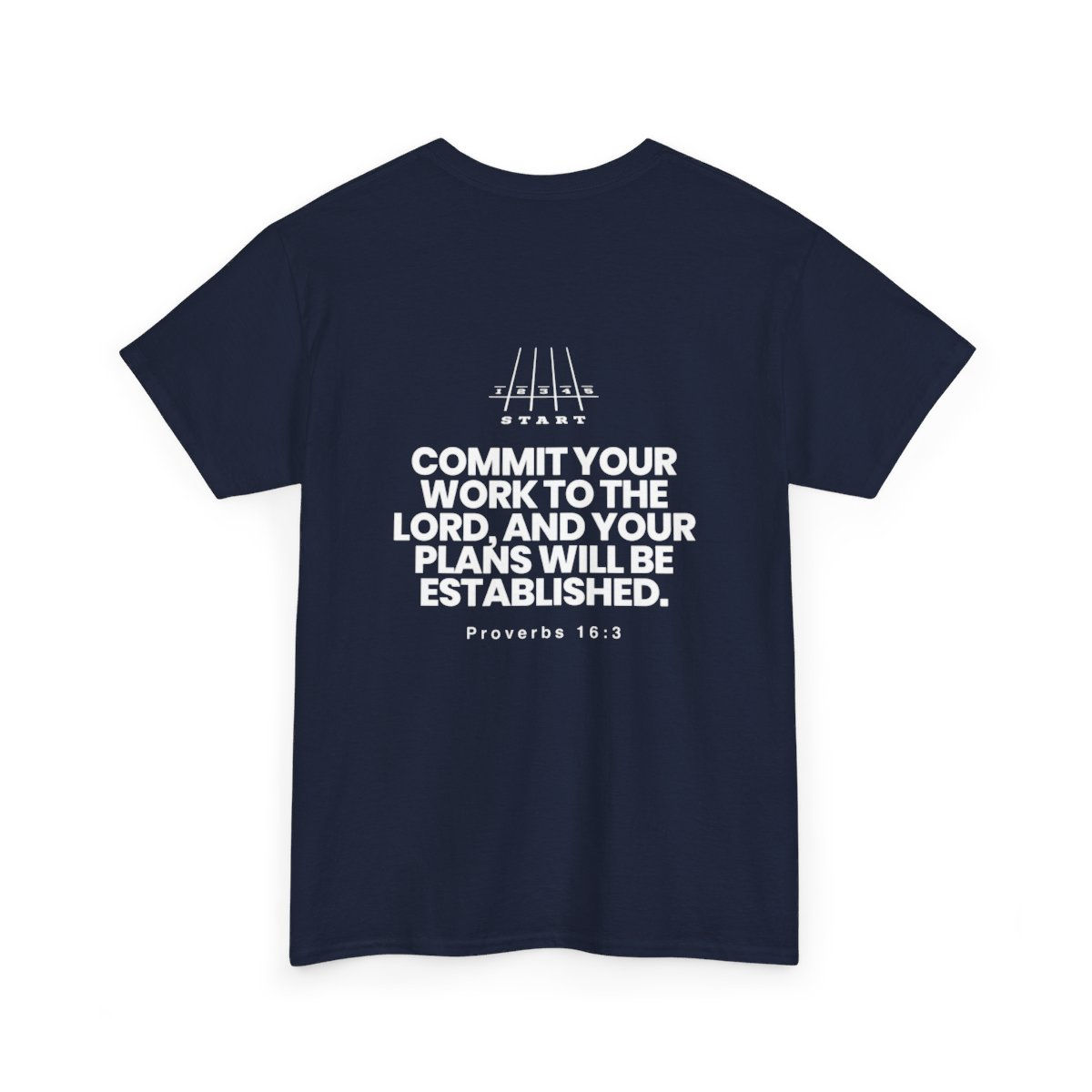 Proverbs 16:3 Track Unisex Heavy Cotton Tee